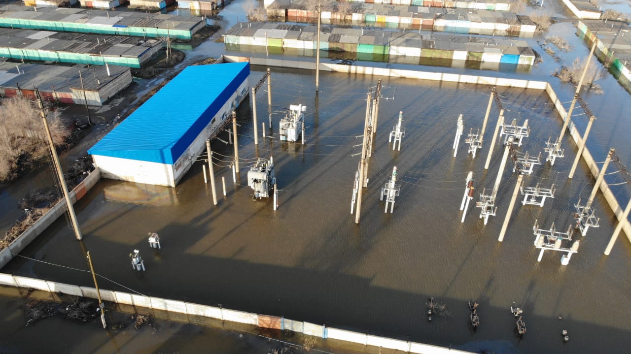 Дрон над электроподстанцией в Орске. Энергетики мониторят уровень воды