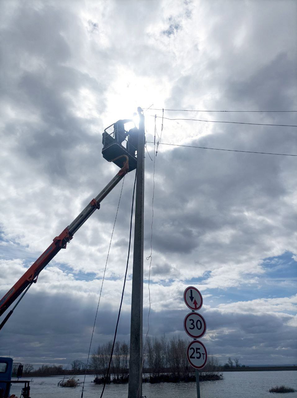 Как только паводковые воды ушли, энергетики построили временный участок электросети и подали напряжение. Теперь жители села снова получают электричество от единой энергосистемы.
