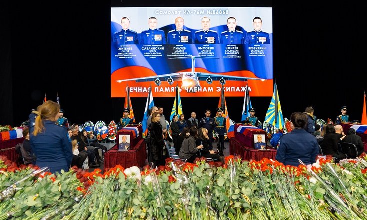 Справочно: самолет Ил-76 потерпел крушение в результате террористической атаки со стороны киевского режима. После попадания ракеты экипаж самолёта не оставил борт и отклонил воздушное судно в поле, не допустив падения на жилой квартал. Погибли шесть членов экипажа, 65 пленных украинских военнослужащих и трое сопровождающих.