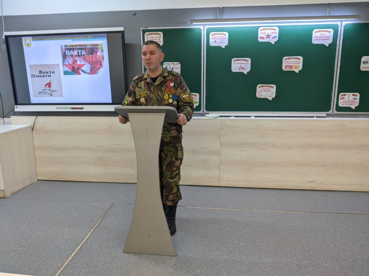 Свой опыт работы представили педагоги школы. Белков А.П., заместитель директора по гражданско- патриотическому воспитанию, представил опыт работы по организации мероприятий в рамках проекта « Вахта памяти », направленных на обеспечение функционирования системы патриотического воспитания и реализацию федерального проекта « Патриотическое воспитание ». Веретенников Э.А совместно с обучающимися 10Б и кадетского классов провел воспитательное мероприятие гражданско- патриотической направленности, посвященное 80- летию освобождения Ленинграда от фашистской блокады « Непокоренный Ленинград » для учеников начального звена.