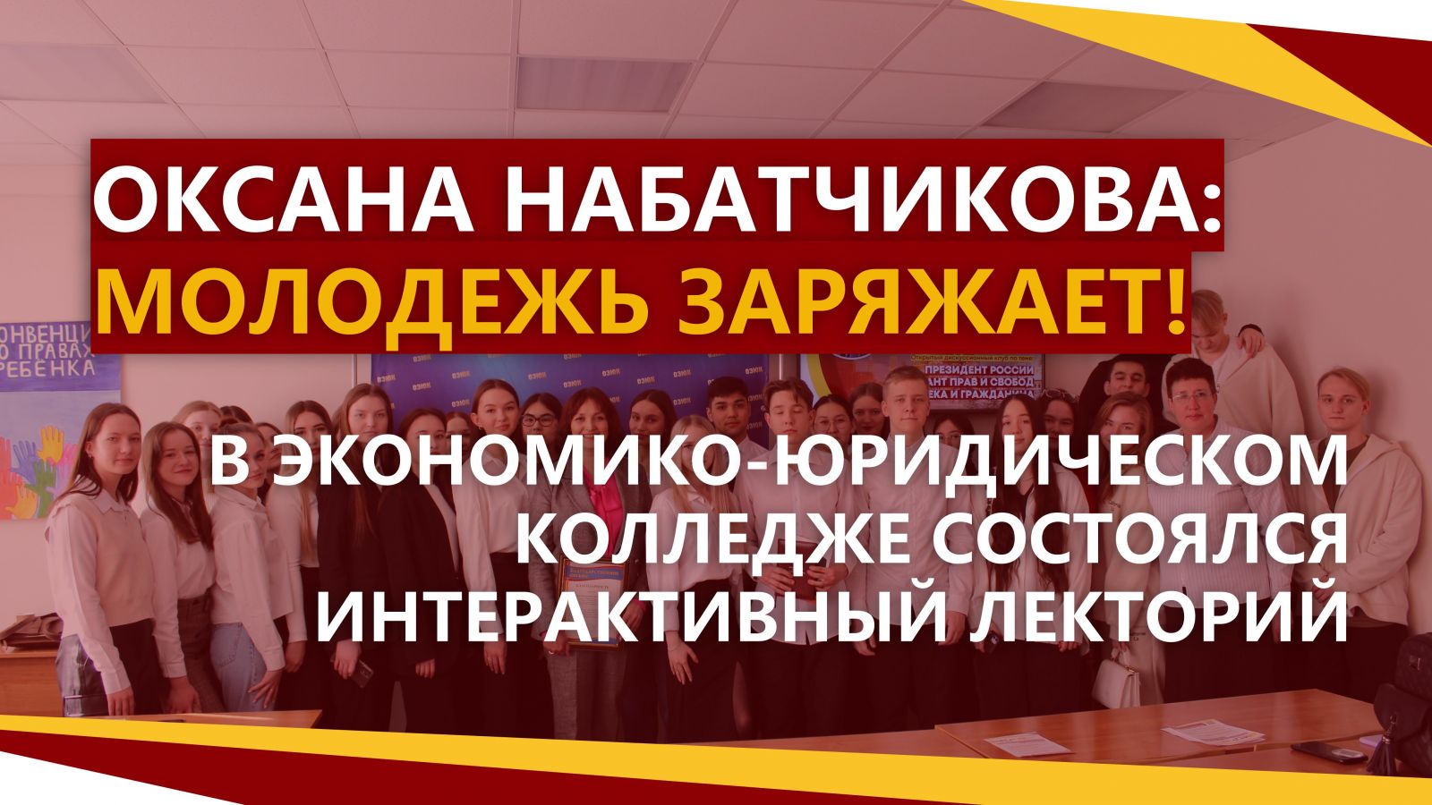 Вчера в областном центре на базе Оренбургского экономико-юридического колледжа Оксана Набатчикова, Председатель Совета регионального отделения, встретилась с студентами – начинающими юристами. В формате интерактивной лекции участники поговорили о функциях, правах и обязанностях Президента, а также о правах, свободах граждан и механизмах их защиты.