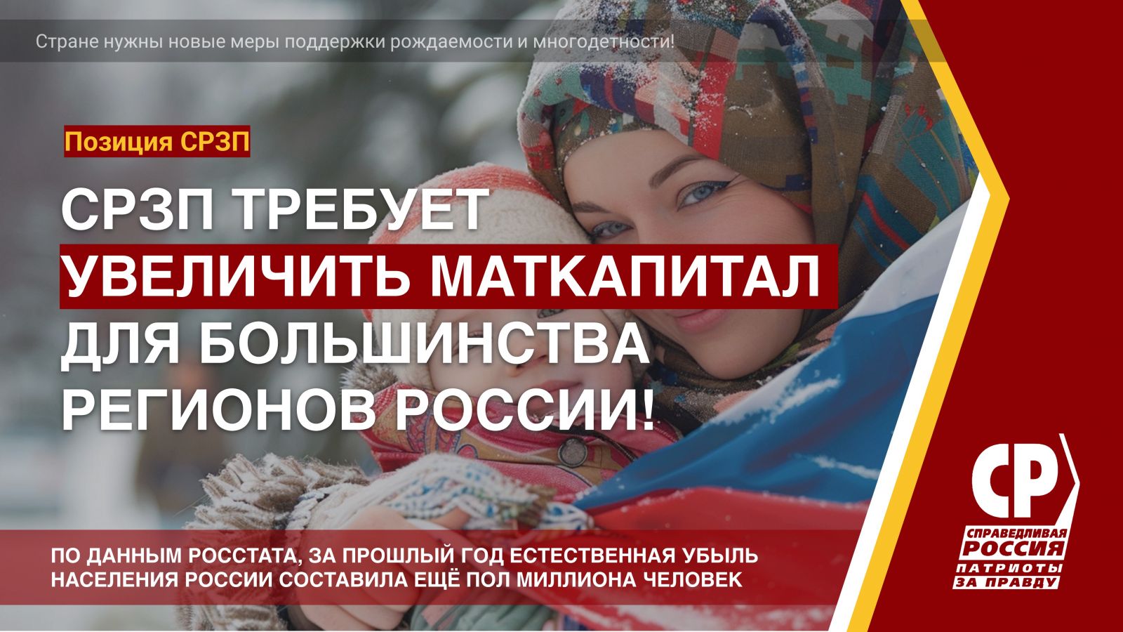 СПРАВЕДЛИВАЯ РОССИЯ – ЗА ПРАВДУ внесла в Госдуму законопроект, связывающий размер материнского капитала с уровнем рождаемости в регионе. В нем мы предлагаем: