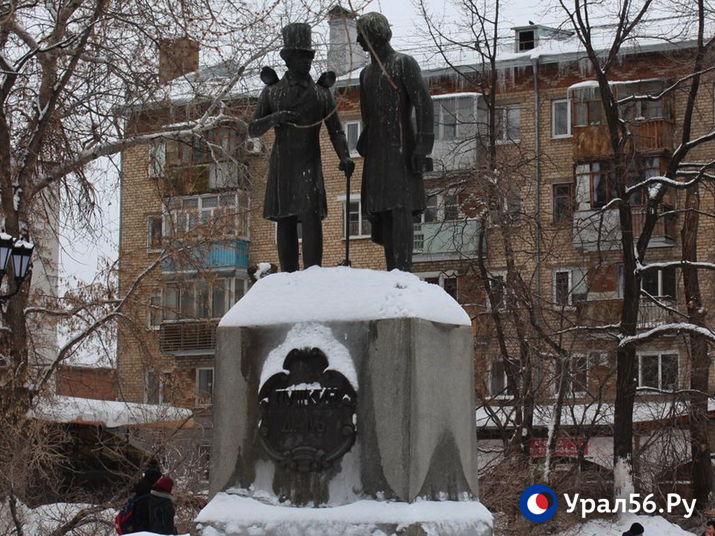 Новая подсветка памятника Пушкину и Далю в Оренбурге