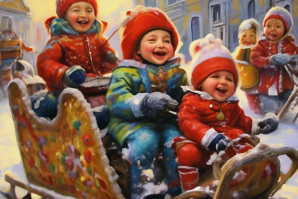 Полет фантазии воистину безграничный: Змей-Горыныч и Машенька с медведями, 12 месяцев и птица-тройка, малыш, наряженный Масленицей, или санки-мерседес (или летающие сани) — здесь можно все.