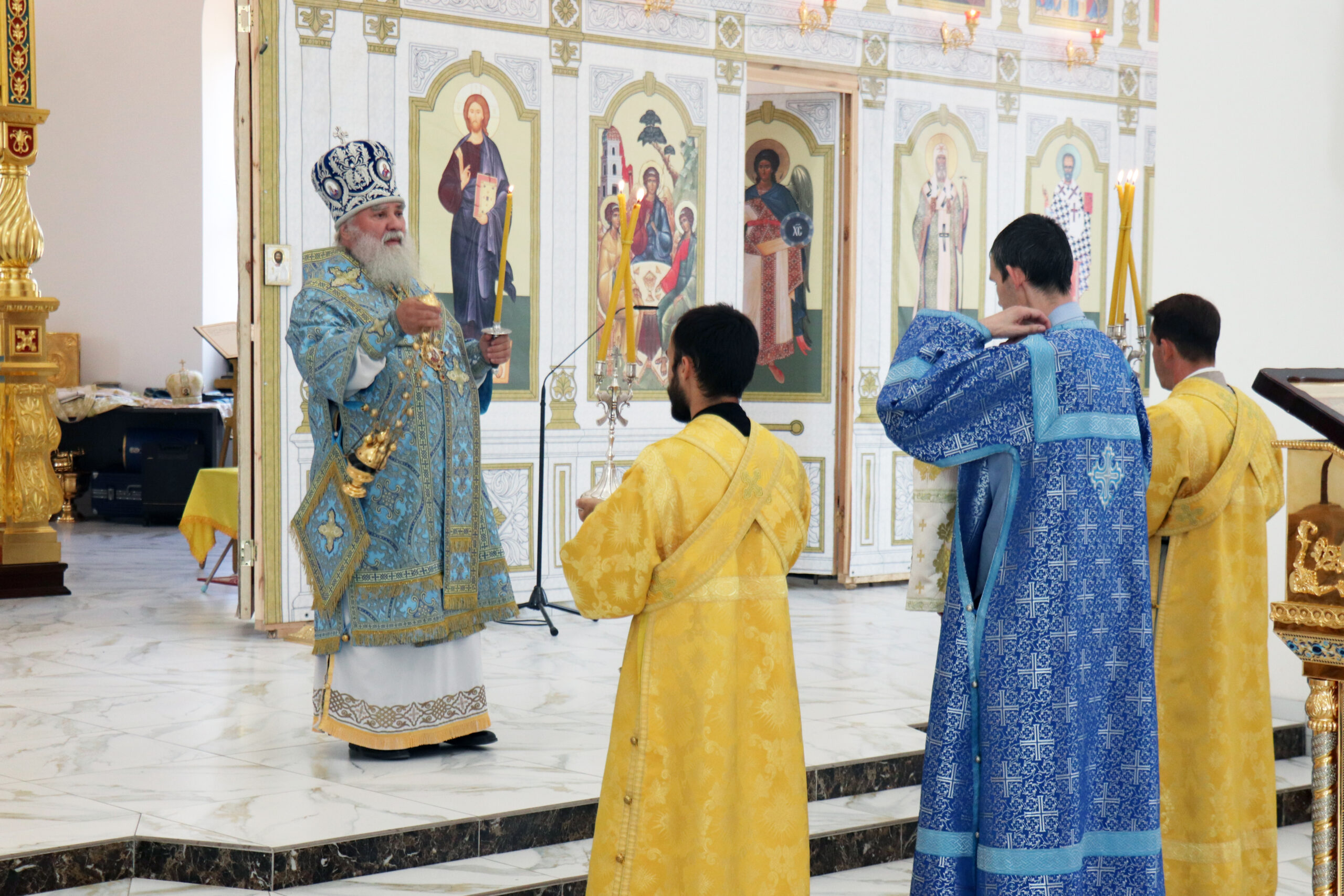 Бузулук. 21 июля 2024 года, вечером в Неделю 4-ю по Пятидесятнице, епископ Бузулукский и Сорочинский Алексий совершил вечернее богослужение с акафистом Божией Матери в Свято-Троицком кафедральном соборе.