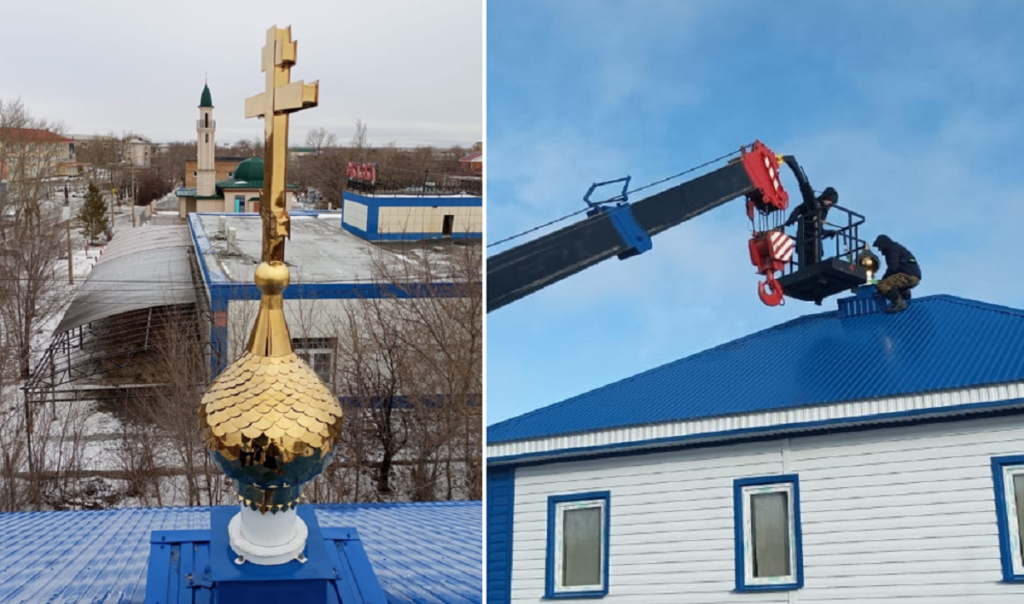 На здании воскресной школы храма установили крест и купол, читаем в сообщении на страничке в ВК .