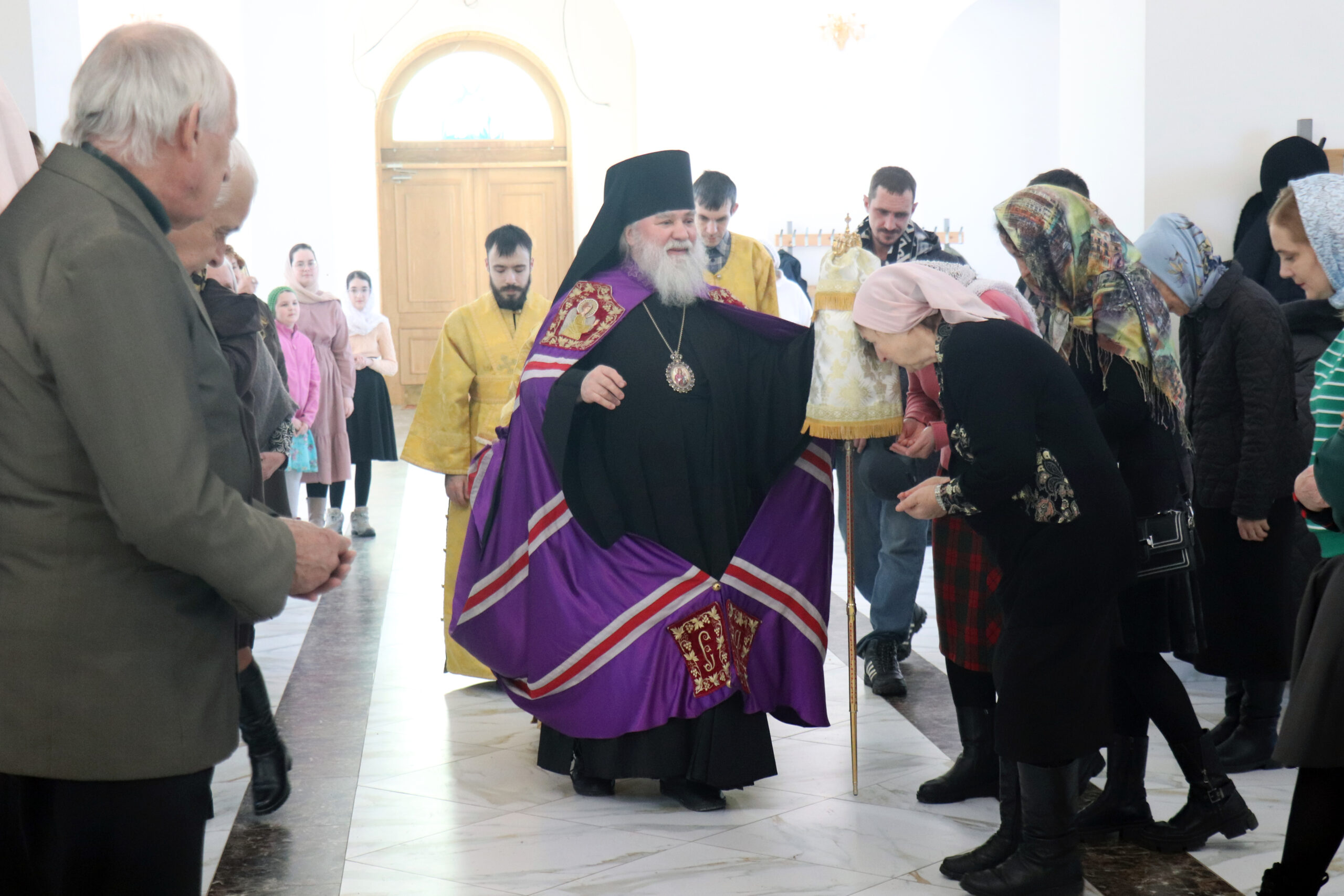 Его Преосвященству сослужили: архимандрит Ефрем (Матынцев), иерей Михаил Цапяк, иерей Вадим Зотов и диакон Иоанн Шумилин.
