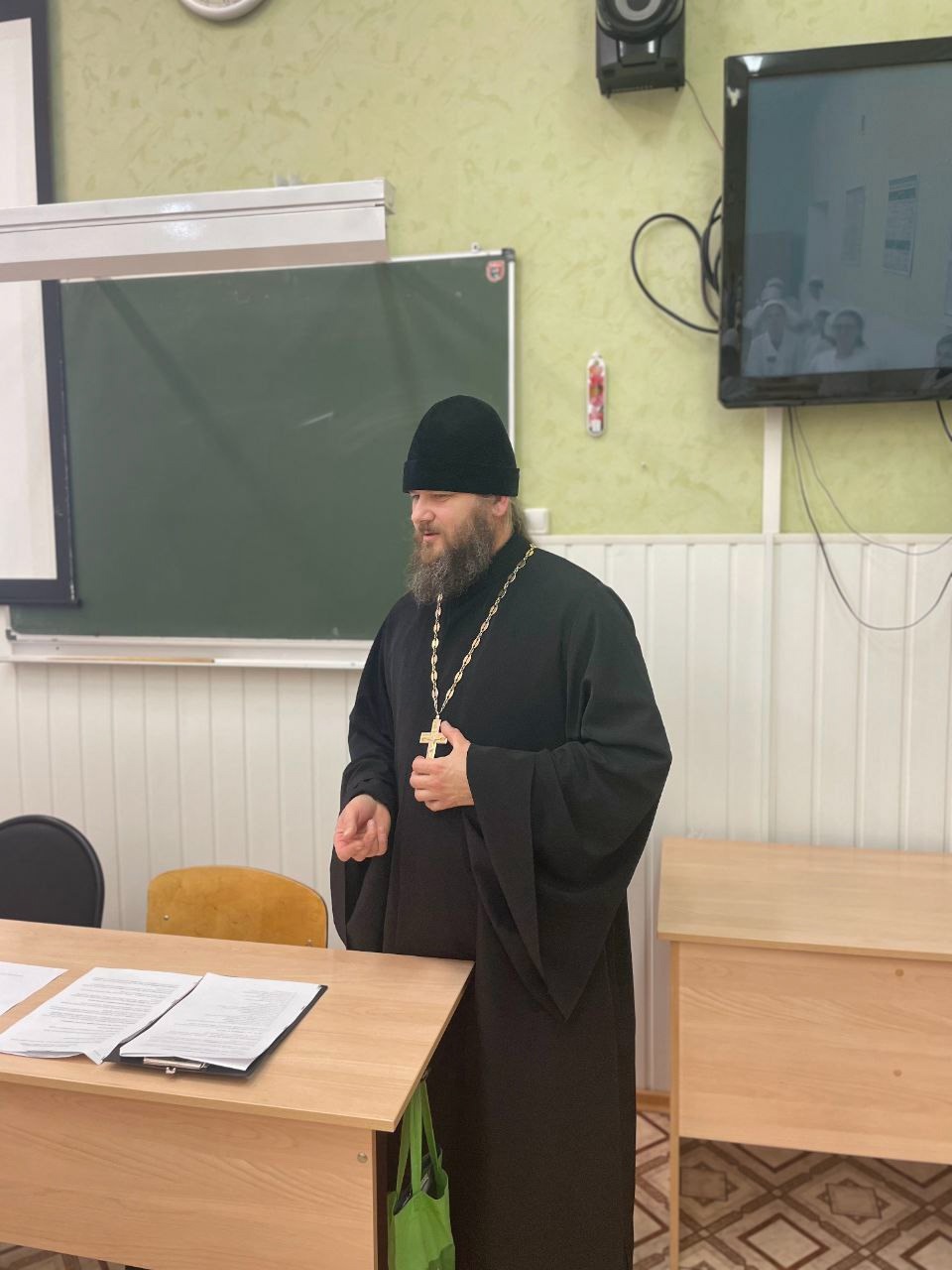 Студенты и педагогический коллектив поблагодарили иерея Алексия Анисимова за участие, духовные советы и рекомендации!