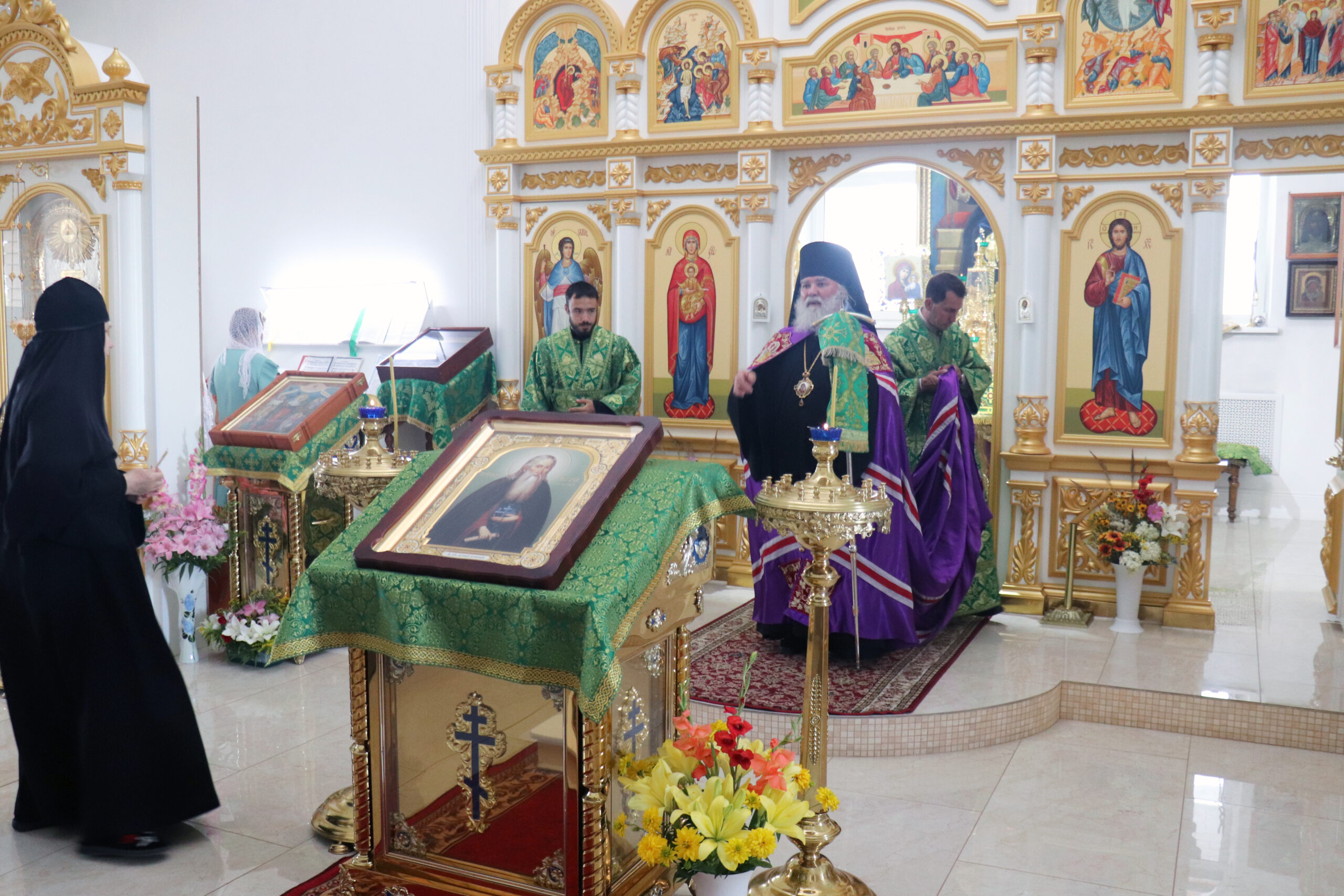 Его Преосвященству сослужил наместник мужского монастыря игумен Виталий (Климов). Пел хор под управлением Юлии Осиповой.