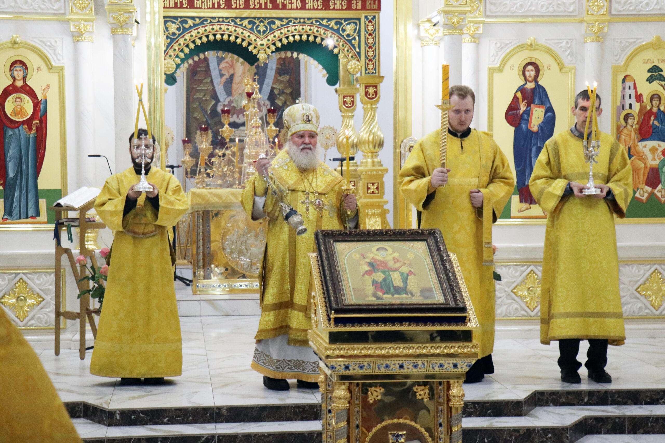Также архиерей поздравил с днем памяти священномученика Александра, епископа Иерусалимского, частица мощей которого была заложена под собором, при начале его строительства.
