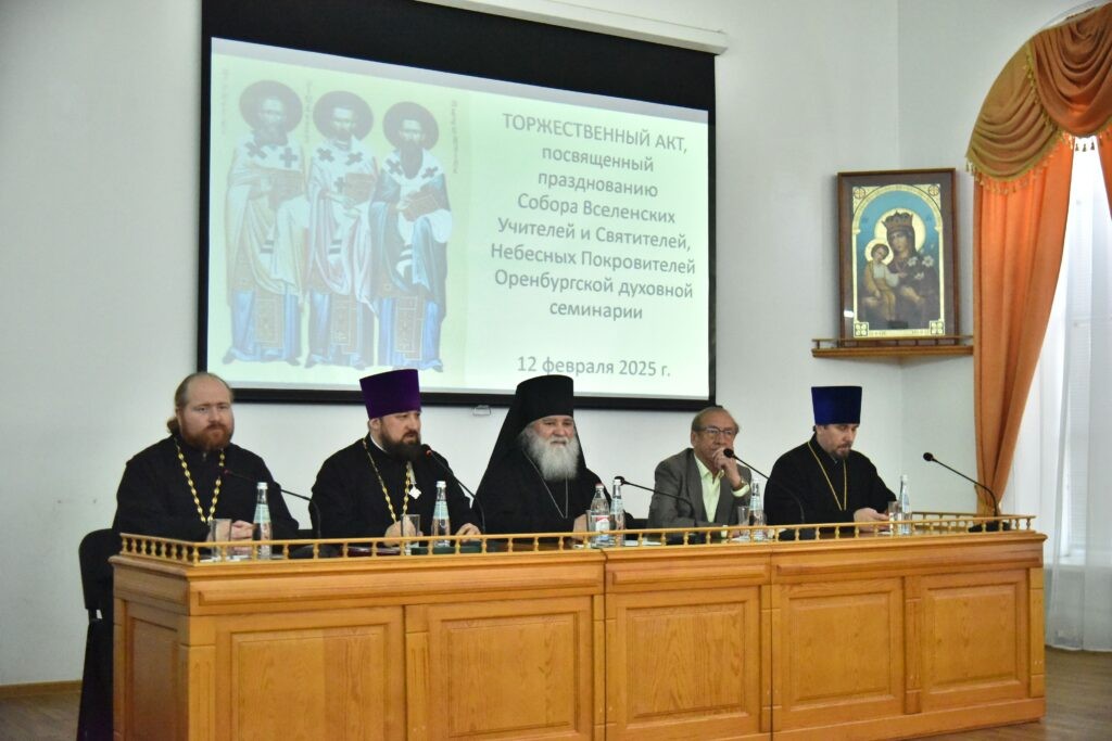 Оренбург 12 февраля 2025 года в Оренбургской духовной семинарии по случаю престольного праздника домового храма в честь трех вселенских великих учителей и святителей Великого, Григория Богослова и Иоанна Златоуста состоялся торжественного акт.