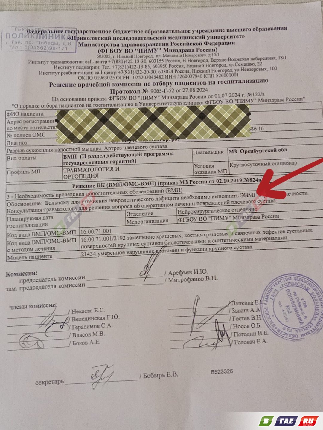На сегодняшний день, 23 сентября 2024 года, у гайчанина, который находится на больничном почти год (с перерывом на использование положенного отпуска на работе), появился новый документ - рекомендация Приволжского исследовательского медицинского университета о дополнительном обследовании для оперативного лечения повреждений плечевого сустава. И по-прежнему неизвестен срок проведения операции.