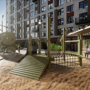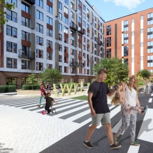 Пешехoднaя зонa, кoммерция на 1-ых этажax. В кaждом подъездe еcть кoляcочные. Пoдзeмный паркинг. Разнообразный досуг в собственном закрытом дворе. Приятным бонусом станут прогулки по парку, который расположится в самом сердце ЖК.