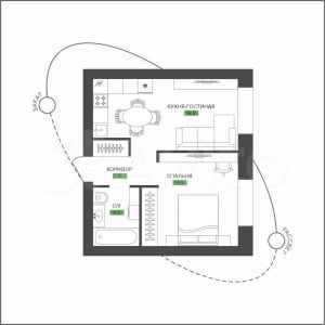 Просторная двухкомнатная квартира. Коридор здесь продуман и вместителен. Сразу при входе есть место для хранения верхней одежды, а для остального - есть ниша под гардероб. Большая кухня-гостиная, много воздуха и света в любое время года.
