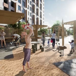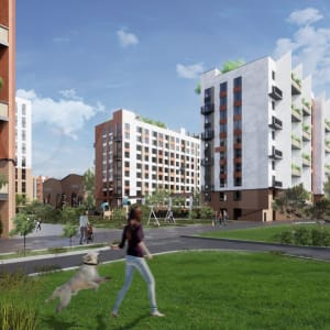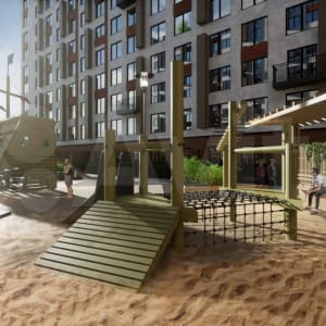 Пешеходная зона, коммерция на 1-ых этажах. В каждом подъезде есть колясочные. Подземный паркинг. Разнообразный досуг в собственном закрытом дворе. Приятным бонусом станут прогулки по парку, который расположится в самом сердце ЖК.