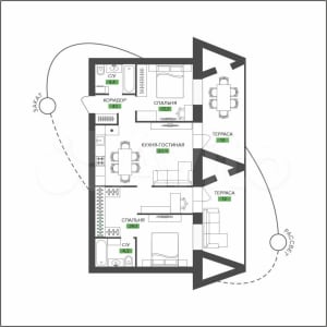 Это не просто квартира, а аналог частного дома. Квадратная кухня-гостиная с выходом на террасу становится настоящей территорией релакса. Мастер-спальня со своим санузлом и отдельной террасой.