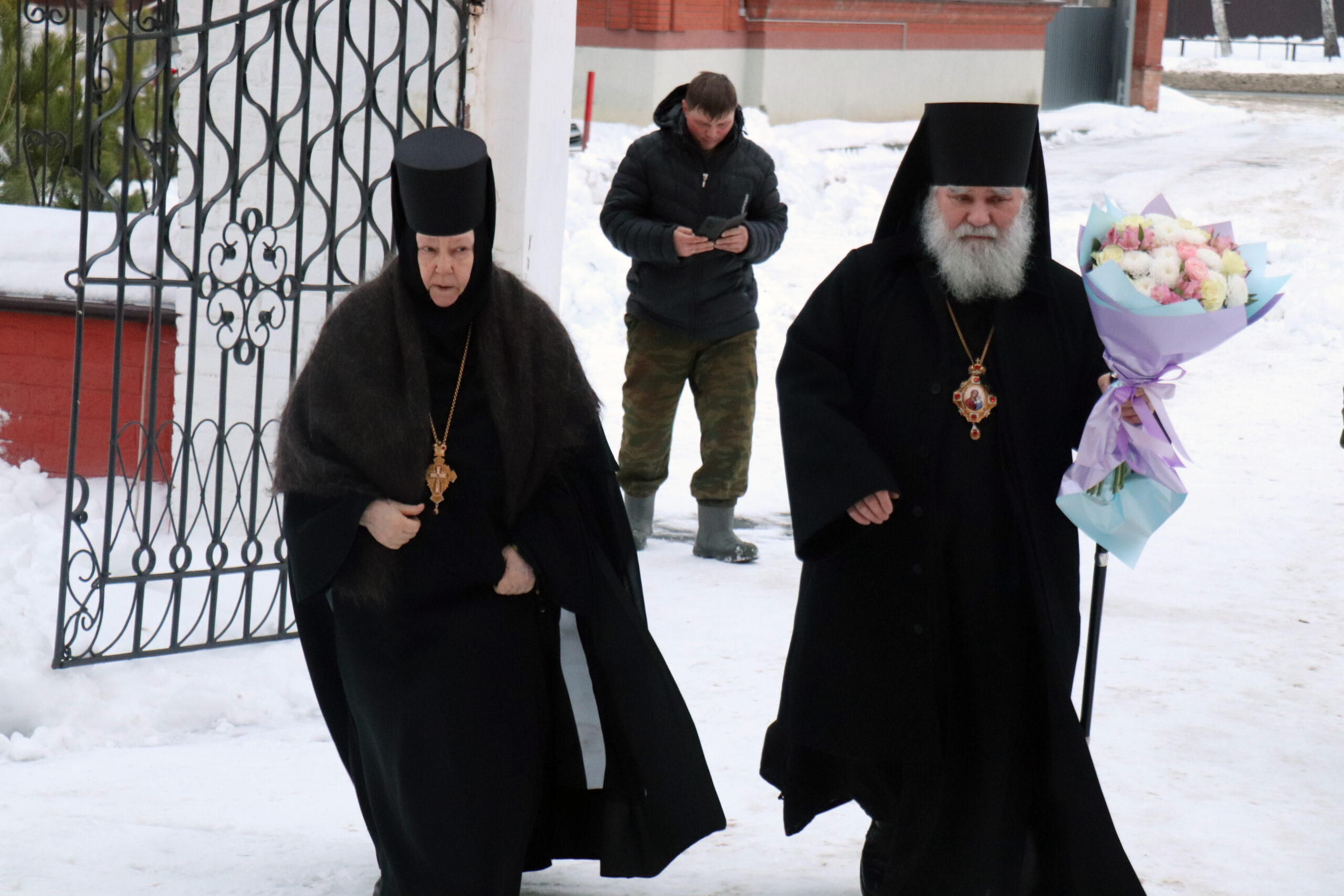 Его Преосвященству сослужили: старший священник монастыря иерей Антоний Сотников, протоиерей Александр Тарасов, иерей Павел Шелемин и диакон Иоанн Шумилин.